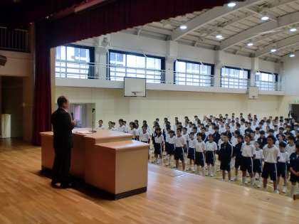 本日の全校朝会では、「ルールとマナー」について話をしました。