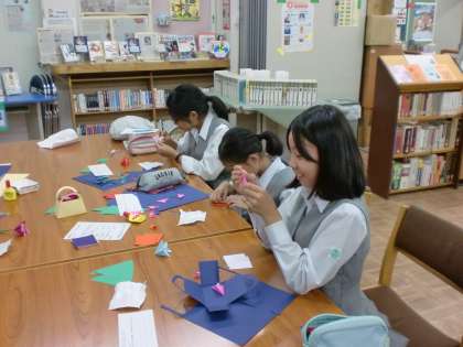 図書館プログラム 公開日 2016/07/12 更新日 2016/07/12 学校日記 今日の図書館プログラムは「敬老の日」 シリーズ第2回です。前回は「カード」 でしたが、今回は花束と箱です。 なかなかかわいらしい作品が出来ていました。 いいね(0)