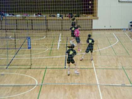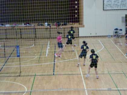 体育館ではバドミントン部と バレー部が活動を行っていました。