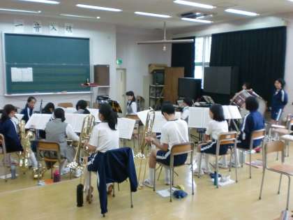 午後2時の活動は 3年3者面談、バスケットボール部、 学習支援教室、吹奏楽部 などが行われていました。