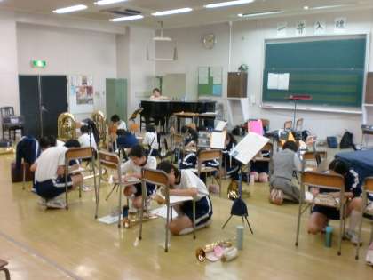 夏休みの部活動 公開日 2016/08/01 更新日 2016/08/01 部活動 午前9時過ぎ この時間、体育館ではバレー部とバドミントン部 音楽室では吹奏楽部が活動を行っています。 吹奏楽部は、練習前に本日の課題を確認していました。 いいね(0)