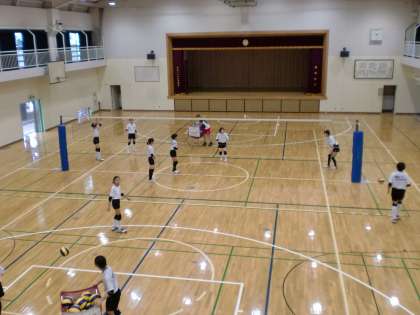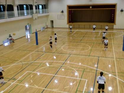 バレー部は体育館で練習を しています。 暑いので熱中症に気をつけながら 練習をしています。