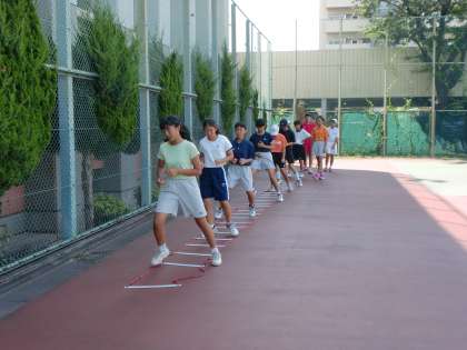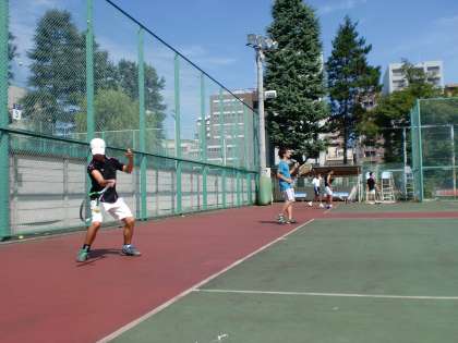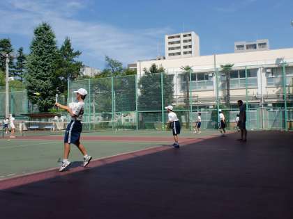 テニスコートでは、硬式テニス部とソフトテニス部が