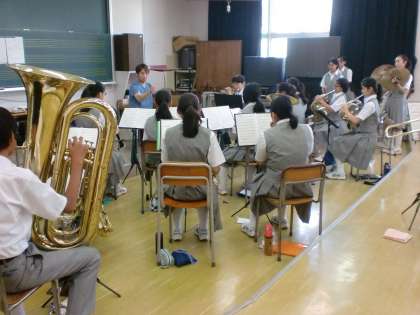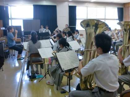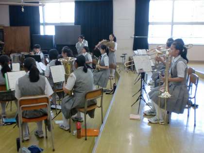 吹奏楽コンクールに向けて、音楽室で最終調整を