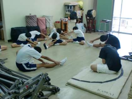 硬式テニス部はミーティングルームでトレーニングをしました。