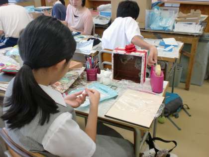 美術部の活動 公開日 2016/08/09 更新日 2016/08/09 部活動 美術部は、美術室でボックスアートの制作です。 涼しい部屋で皆、笑顔で作業をしていました。 3年生も多数参加していました。 いいね(0)