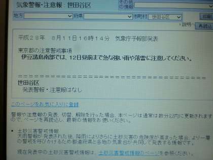 本日は、世田谷区内に気象に関する注意報、警報は発令されて