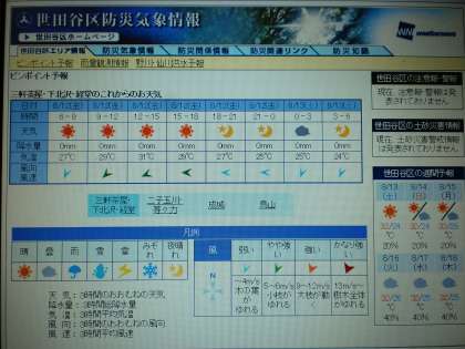 気象庁日最高気温一覧、気象庁防災情報、世田谷区防災気象情報