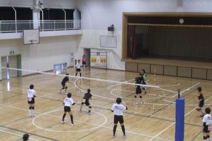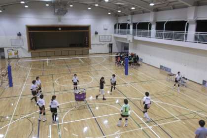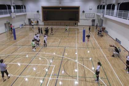体育館ではバレー部が烏山中学校と 練習試合を行っています。