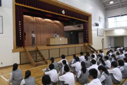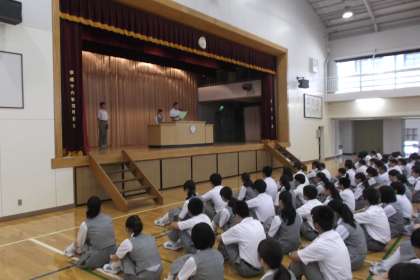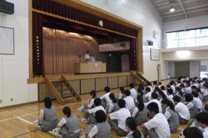 校歌斉唱の後は生徒代表のことばです。 1年、2年、3年の順で2学期の抱負を 述べました。