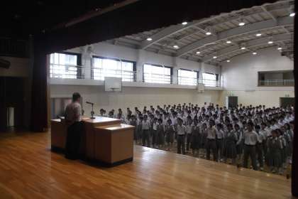 本日の全校朝会では、始業式に続き2学期の重点目標について