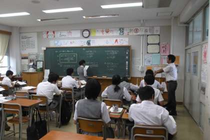 3年の数学の少人数授業です。 1クラス 15〜16人程度の授業 で行われています。