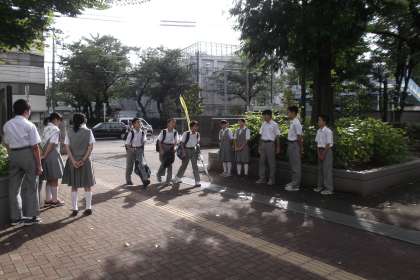生徒会役員はユニセフ募金、生徒会役員候補者は朝のあいさつ