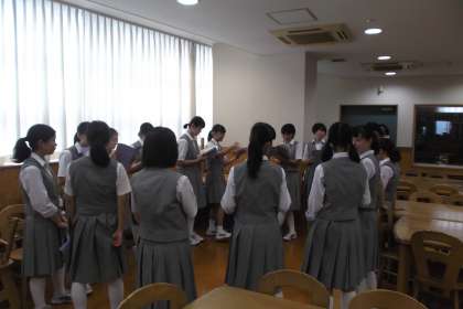 ランチルーム・・・3年有志合唱パート練習