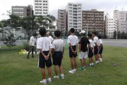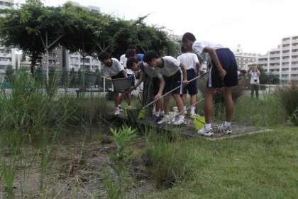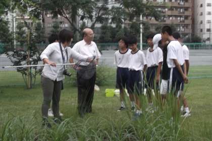 最初のグループは生き物をとる方法を聞き、タモ網で