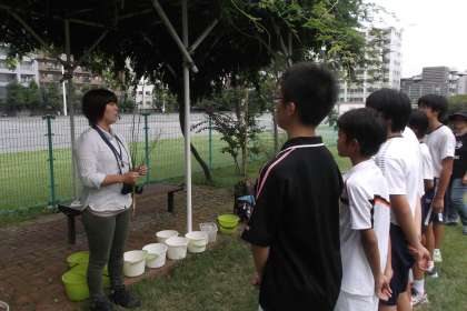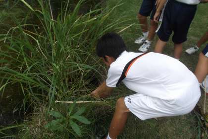 次のグループは水辺の繁殖しすぎた草を抜き、 その後、顕微鏡での観察に移りました。