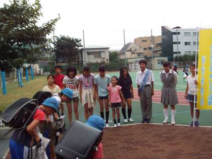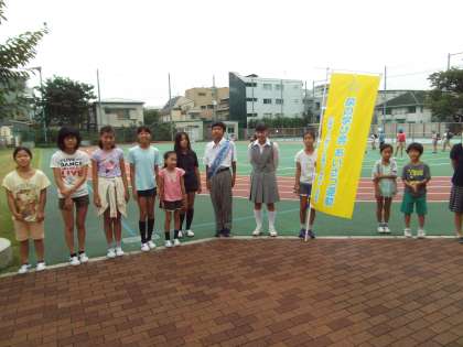 中里小学校のあいさつ運動に 生活委員が参加しています。