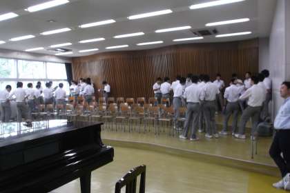 3年の有志合唱に向ける取り組みは 真剣そのもの。 7時40分から全員集まってパート練習を 行っていました。