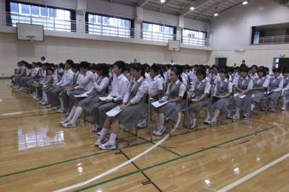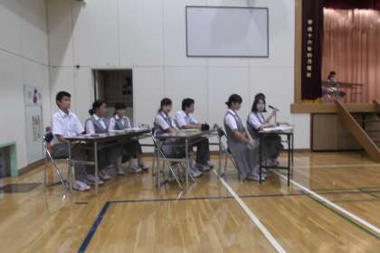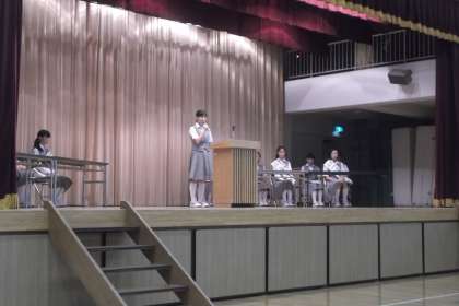 後期生徒会役員選挙立ち合い演説会1 公開日 2016/09/15 更新日 2016/09/15 学校日記 5時間目には、後期生徒会役員選挙立ち合い演説会が ありました。選挙管理委員による説明の後、 会長、副会長、書記、議長の各候補、応援演説者が 緊張の中、熱心にこれからの三宿中学校について 語りました。演説を聞く生徒たちも、一人ひとりが 内容について考えました。これから投票が行われます。 いいね(0)