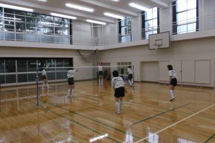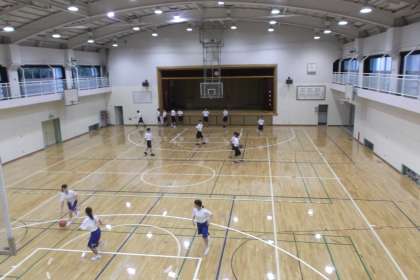 バスケットとバレー部が体育館で 朝練を行っていました。