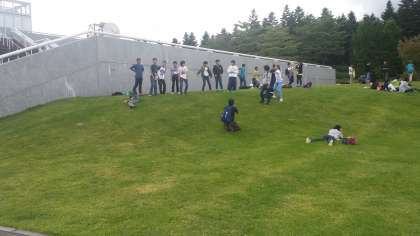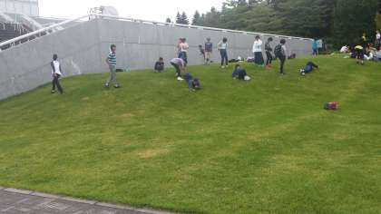 昼食後は芝を使って草滑りを行っているグループもいました。