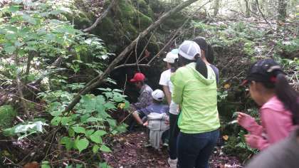 フィールドセンターでガイドさんの説明を受け、フィールドワークと体験に分かれました。