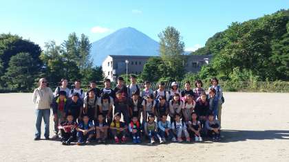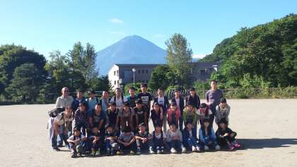 富士山を背景に集合写真を撮りました。