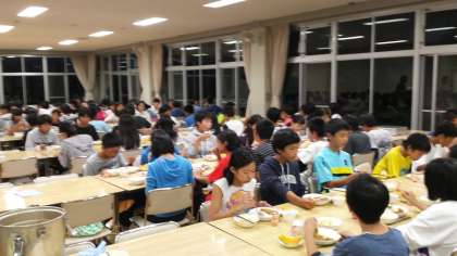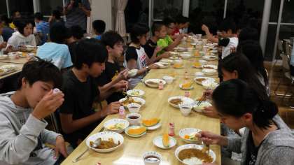 夕食はカレーでした。お代わりの長い列ができました。 夕食後はナイトウォークと星空観察を行いました。