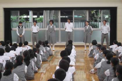 移動教室26 公開日 2016/09/29 更新日 2016/09/29 学校日記 1年生は1時間目に学年集会を開き、移動教室のまとめを しました。始めに、先生から全体の話があり、その後、 今回の移動教室の実行委員から感想がありました。 団結というスローガンの達成に向けて、自分たちの時間を 割いて準備をした結果、皆の楽しそうな顔を見て嬉しかった などの感想がありました。学年集団としての質が高まって いることを実感しました。 いいね(0)
