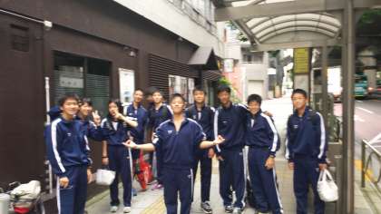6時45分、陸上競技大会の選手が三宿のバス停でバスを待っていました。全員生き生きとした目をしていました。