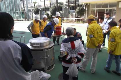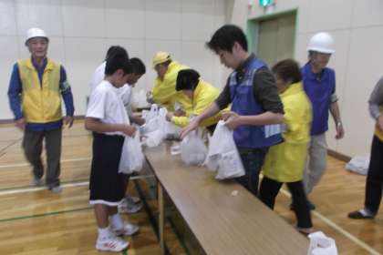 給食・物資班はバーナー設置・操作、啓発物品仕分け を行いました。
