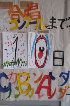 学芸発表会朝練習の風景 公開日 2016/10/19 更新日 2016/10/19 学校日記 ランチルームでは、まずは発声練習です。 「アカマキガミ、アオマキガミ、キマキガミ」と懐かしい フレーズの声出しから練習が始まります。 3年生恒例のカウントダウンカレンダーは、あと10日と なっています。 いいね(0)