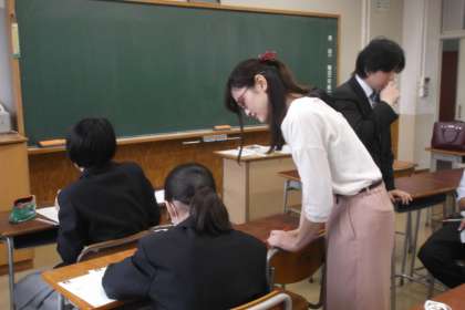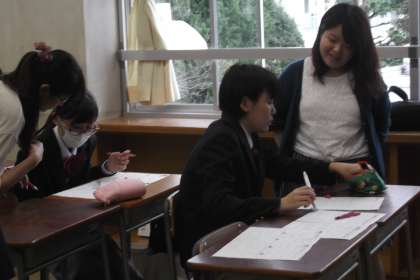 水曜日の放課後補習は下校後すぐに 行われます。学生ボランティアも2人 に増え、丁寧に教えてくれています。