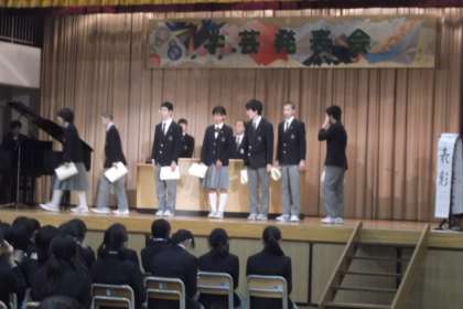 閉会式 公開日 2016/10/29 更新日 2016/10/29 学校日記 閉会式では音楽科の講評、 校長講評、副実行委員長の言葉 どの話にも3年生の立派さ、思いやりの心 が入っていました。 いいね(0)