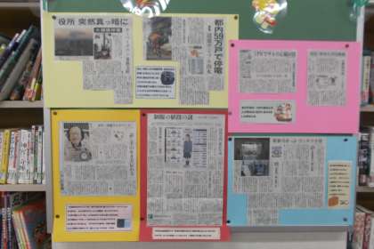 図書室3 公開日 2016/11/07 更新日 2016/11/07 学校日記 11月に関わるクイズでは「旬の食材」や 「伝統行事」などが載っています。答えは 図書室に行って、シートをまくってください。 新聞記事のコーナーでは金田一先生などの 特集も出ています。 いいね(0)