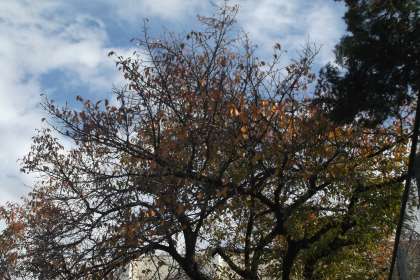 テニスコート周辺の木々も 紅葉してきました。 柿の木には柿の実がなっています。