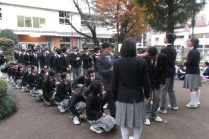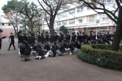 (3)理科室で火災発生、校内にいては危険と判断し中庭に避難する。