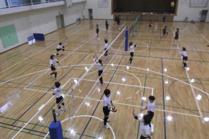 バレー部、バトミントン部は、体育館で基礎練習を