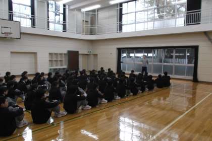 1年生は格技室で 2学期の生活について 振り返りを行っていました。