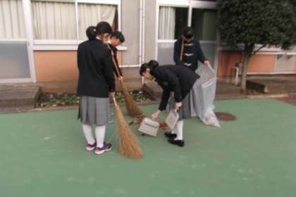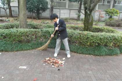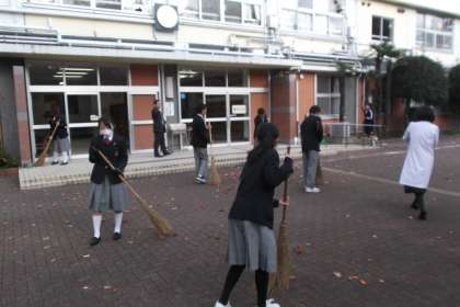 今朝は1年生が落ち葉掃きの ボランティア活動を行っていました。