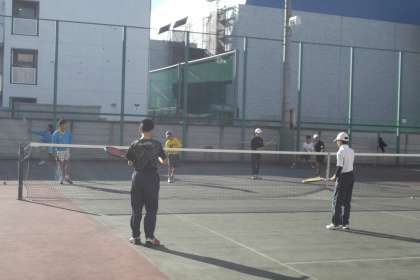 池尻小、旭日小の6年生がソフトテニスの 部活動体験を行っていきました。