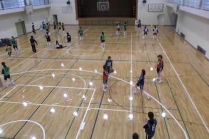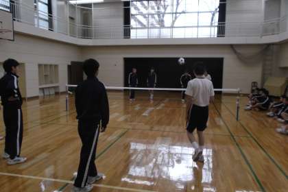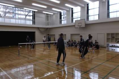 女子はフロアでバスケットの練習、 男子は格技室でニュースポーツを 行っていました。