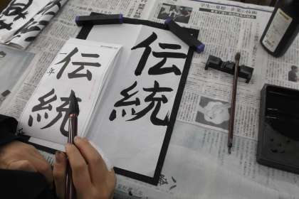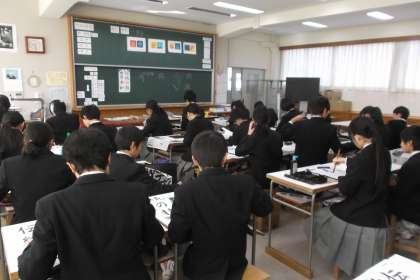 1年生の書写の楷書は「伝統の技」です。 半紙を使って、それぞれの部分の練習をしていました。