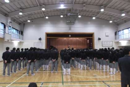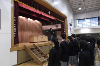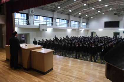 終業式 公開日 2016/12/22 更新日 2016/12/22 学校日記 今回の終業式はインフルエンザ等の 流行が心配されるので 校長講話と校歌のみ、体育館で行い、 後半は放送で行いました。 いいね(0)
