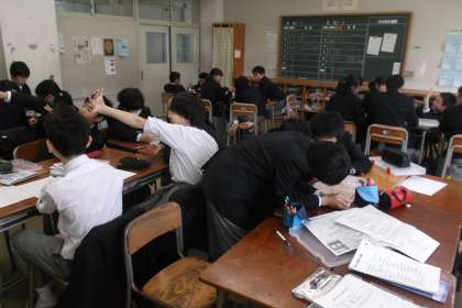 1年生は都内巡りのコースを 班ではなしあっていました。