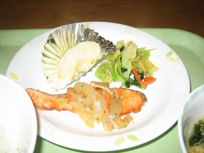 鮭のムニエルニンニクソース 味付けは西洋わさびを使いました。