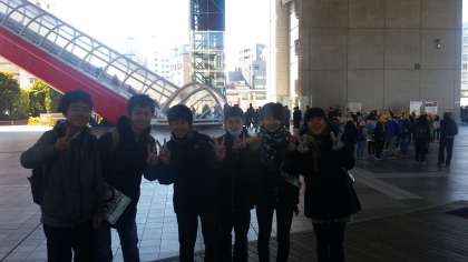 都内巡り 公開日 2017/02/10 更新日 2017/02/10 学校日記 江戸東京博物館のチェックポイントで、班長さんは確認を行い、チケットを貰いました。記念撮影の後ろにはスカイツリーが見えます。 いいね(0)