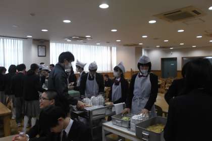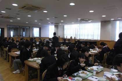 今日は2年生だけの給食でした。 ランチルームで楽しく給食をたべました。