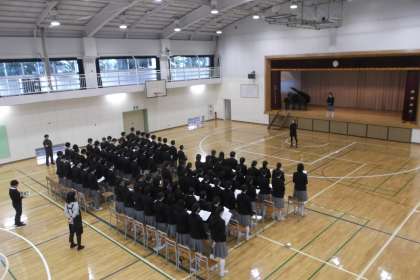 2校時は2年生の卒業式練習。 自分の座る場所の確認と合唱の 練習を行いました。