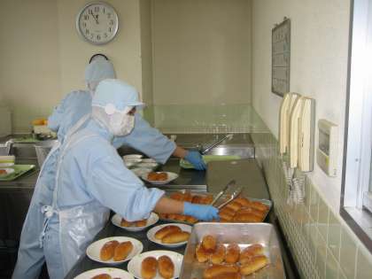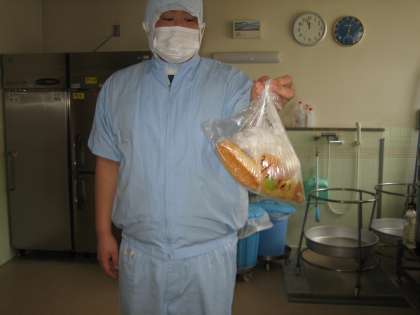 チーフが手にしている袋の中には、揚げパン、スープなど